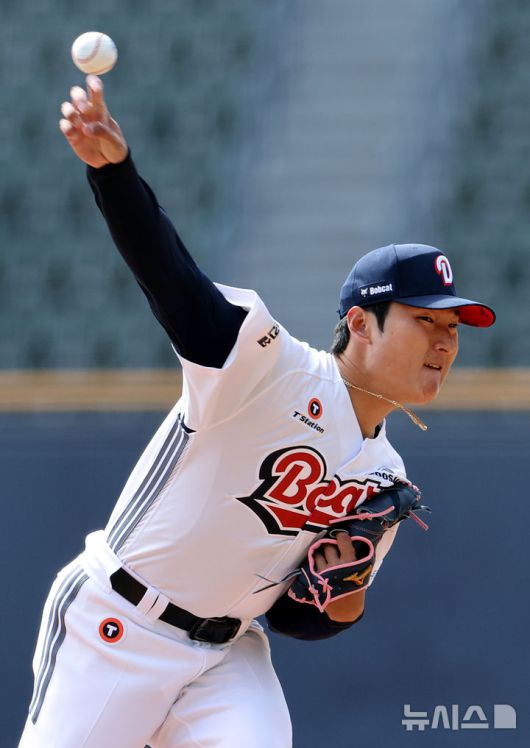 [서울=뉴시스]김희준 기자 = 프로야구 두산 베어스의 부상병들이 1군 복귀에 박차를 가하고 있다. 토종 에이스 곽빈과 불펜 핵심 홍건희의 복귀가 가시화됐다.