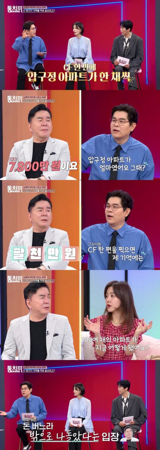 "한때 큰돈을 벌었다"는 심형래는 전성기 시절 엄청난 수입을 올렸던 이야기도 공개해 놀라움을 안겼다. "그 당시 찍었던 CF광고만 100편 이상, 출연한 영화만 118편"이라고 밝힌 심형래는 "당시 압구정 아파트 한 채가 7800만 원이었는데, 한 편 찍을 때마다 8000만 원을 받았다"고 덧붙여 모두의 입을 다물지 못하게 만든다.