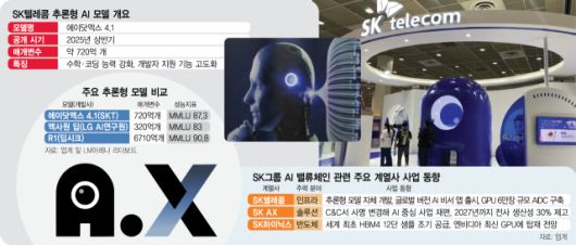 SK그룹 차원에서도 이번 추론형 모델 출시를 계기로 AI 밸류체인 구축에 속도가 붙을 것으로 전망된다. SK그룹은 SK텔레콤의 AI 모델과 데이터센터 등 인프라 사업을 필두로 반도체 조달로 이를 떠받치는 SK하이닉스, 최근 사명 변경으로 AI 솔루션 조직으로 재편된 SK AX(구 SK C&C) 등을 통해 서비스 분야까지 독자적 밸류체인을 구축 중이다. SK텔레콤은 연내 에이닷 유료화와 북미 버전 ‘에스터’ 출시, GPU 6만 장 규모의 AI 데이터센터 구축을, SK하이닉스는 엔비디아 등에 고대역폭메모리(HBM)4 조기 공급을 추진 중이다.