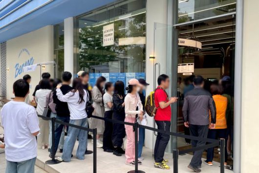 23일 오픈한 플래그십 스토어 1호점 '벤슨크리머리 서울' 매장 앞에서 대기 중인 고객들의 모습. [사진=한화갤러리아] |