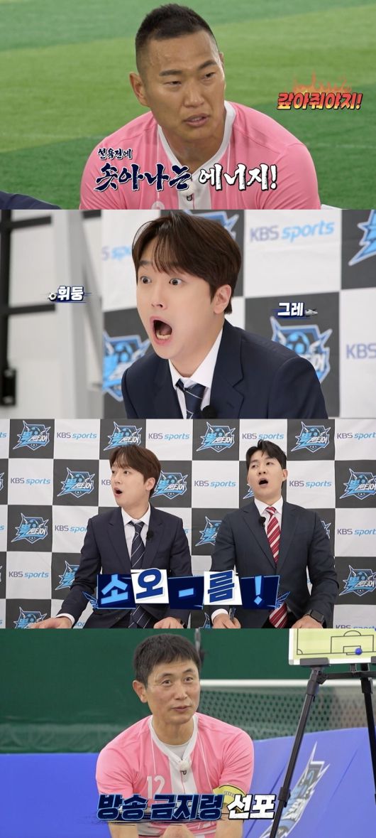 그런가하면 감독 이영표는 갑작스럽게 '방송 금지령'을 선포한다. 이영표의 "지금부터 아무도 방송하지 마"라는 강력한 카리스마에 '뽈룬티어'에는 비장한 분위기가 감돌고, 늘 유쾌한 에너지를 뿜어내는 김영광, 조원희, 정대세 3형제도 사뭇 진지해진 눈빛을 보인다.