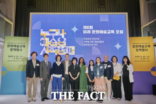 [더팩트ㅣ이새롬 기자] 23일 서울 용산구 블루스퀘어 복합문화공간 NEMO에서 열린 ‘2025 문화예술교육 정책 행사’ 2일차 ‘제6회 미래 문화예술교육 포럼’ 종료 후 연사들이 기념촬영을 하고 있다.