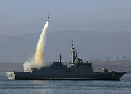 ▲ 4월 30일 북한 당 기관지 <로동신문>은 미사일총국과 국방과학원, 탐지전자전총국이 구축함 '최현'호에 탑재된 순항미사일의 시험 발사를 포함해 무장 체계들의 성능 및 전투 적용성 시험을 28일과 29일 실시했다고 보도했다. 김정은 북한 국무위원장이 현지에서 이를 참관하기도 했다. ⓒ로동신문=뉴스1 |