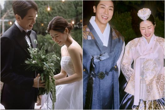 공개된 사진 속에는 박하나와 그의 예비 신랑이자 전 농구선수 김태술의 웨딩 화보가 담겼다. 화보 속에서 두 사람은 턱시도에 웨딩드레스는 물론, 한복까지 완벽하게 소화하며 선남선녀의 모습을 뽐냈다.