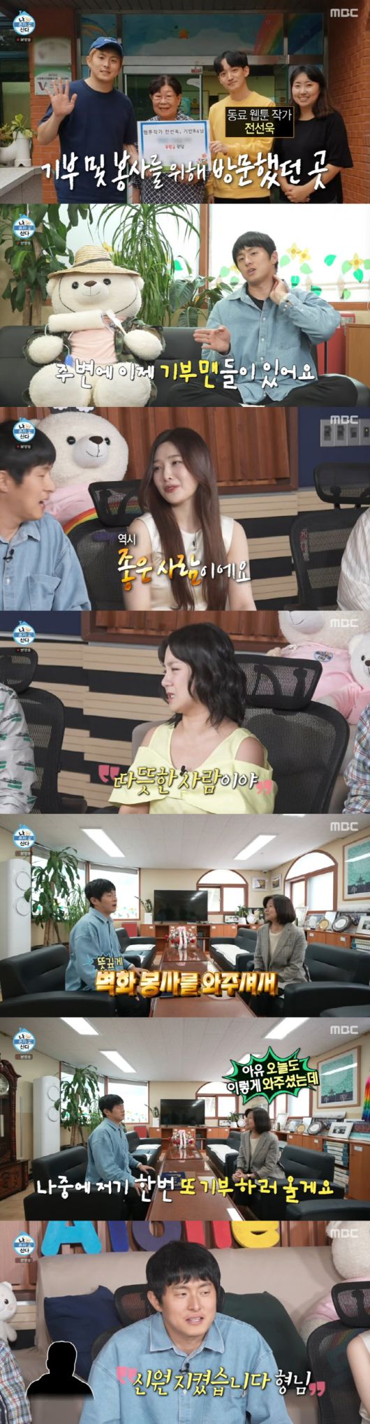 이날 기안84는 예전부터 기부했던 수원의 한 보육원을 찾았다. 그는 "7년 전 아는 동생과 함께 기부도 하고 봉사하기 위해서 방문했다. 그 당시에는 연재하면 마감해야 하니까 밖에 못 나온다. 그래서 기부도 할 겸 좋은 일도 했다"며 "주변에 기부맨들이 있다. 박태준이라는 만화가 친구랑 독거노인 찾아가는 봉사를 했는데 그때 처음 기부해 봤다. 그때부터 (기부가) 이어진 거 같다"고 말했다.