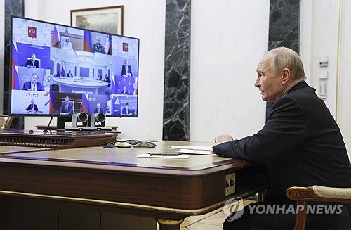 화상회의 주재하는 블라디미르 푸틴 러시아 대통령 |