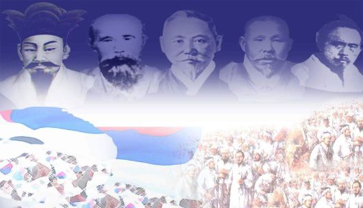 왼쪽부터 천도교의 1세 교조 최제우, 2세 교조 최시형, 3세 교조 손병희, 4세 대도주 박인호, 동학혁명 지도자 전봉준. 천도교중앙총부 제공 |