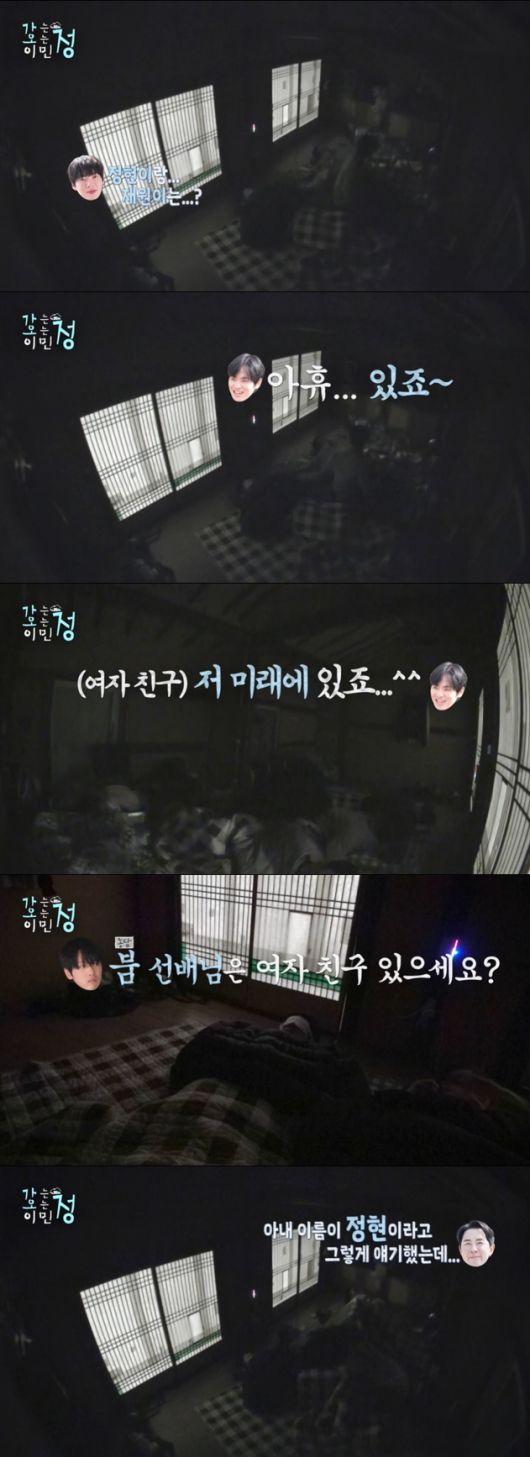 김정현은 "(여자 친구는) 미래에 있죠"라고 답했고, 안재현은 뒤이어 김재원에게도 여자 친구가 있냐고 물었다.