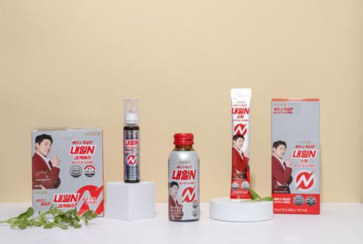 국내 1위 제약업체 유한양행이 2024년 출시한 숙취해소제 '내일N' 제품 사진. hy가 개발한 천연물 소재 '아이스플랜트복합농축액'이 원료로 사용됐다. 인체 적용 시험 당시 아이스플랜트농축액을 섭취한 피실험자는 음주 1시간 뒤 알코올 및 아세트알데히드(숙취 유발 성분) 분해 효소가 대조군 대비 각각 76.8%, 52.6% 늘어났다. 홈페이지 캡처 |