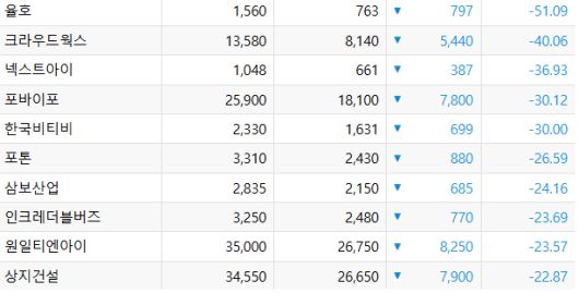 크라우드웍스(-40.06%), 넥스트아이(-36.93%), 포바이포(-30.12%) 등도 약세였다. 크라우드웍스의 경우 유상증자 결정 소식이 주가 하락에 영향을 미친 것으로 분석된다. 크라우드웍스는 344억 원 규모 유상증자를 결정했다고 21일 공시했다.