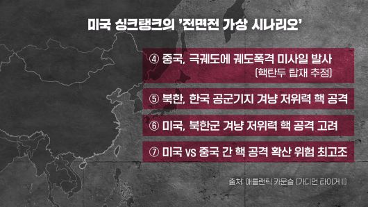 그다음 북한이 한국 공군기지에 저위력 핵 공격을 강행하고, 이에 따라 미국도 북한군에 저위력 핵 공격으로 맞대응을 고려한다는 가정이 이어졌습니다.