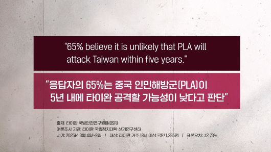 그리고 타이완 국방부의 싱크탱크가 수행한 여론조사에 따르면 33%의 응답자가 "중국 공산당의 위협"이 향후 5년 내에 국가 안보에 대한 가장 심각한 위협이라고 생각한다고는 했지만 과반 이상이 단기간 내에 타이완 해협 전쟁이 발생할 것이라고 생각하지는 않는 것으로 나타났거든요.