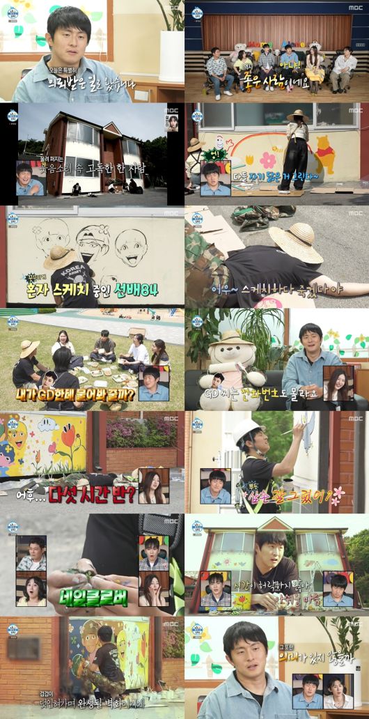 구슬땀을 흘린 후배들에게 점심 식사를 대접한 기안84는 모교의 축제 초대 가수 라인업 토크에 잘나가는 동생들인 GD와 BTS 진을 언급해 관심을 모았다. 그러나 “GD씨 전화번호도 모른다”라고 솔직하게 고백해 웃음을 자아냈다. 수업 일정으로 후배들을 먼저 보낸 기안84는 기뻐할 아이들을 생각하며 보육원 선생님의 도움을 받아 벽화 작업에 몰입했다.