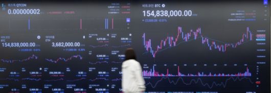 23일 오전 서울 강남구 업비트 전광판에 비트코인 등 가상자산 시황이 표시돼 있다. /사진=뉴스1 /사진=(서울=뉴스1) 이승배 기자