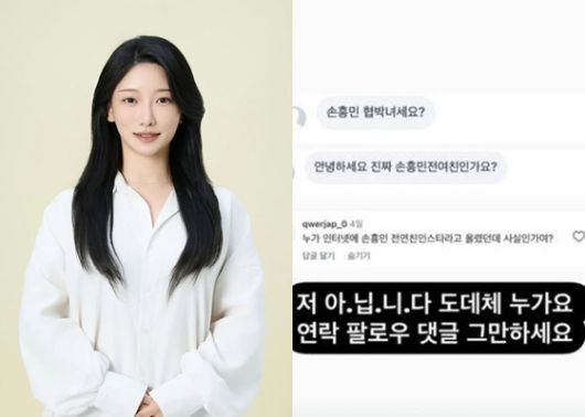 사진 속에는 누리꾼들이 정민희에게 "손흥민 협박녀냐?" "진짜 손흥민 전 여자친구인가요?" "누가 인터넷에 손흥민 전 여친 인스타그램이라고 올렸는데 사실인가요?"라는 메시지를 보낸 내역이 담겼다.