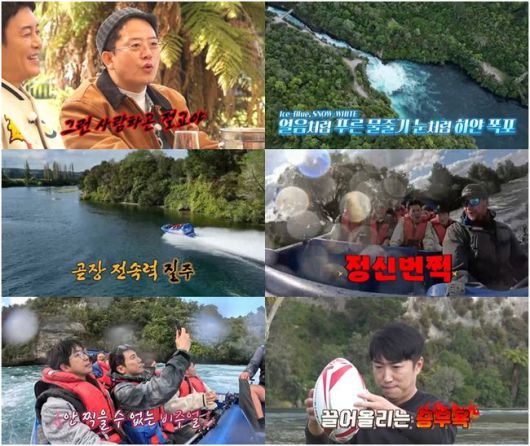 이날 ‘독박즈’는 김준호가 강력 추천한 새우 요리 집에서 푸짐하게 배를 채운다. 화기애애한 분위기 속, 식사를 마친 ‘독박즈’는 근처에 있는 제트보트 탑승장으로 간다. ‘와이카토강’을 쾌속 질주하며 덤으로 ‘후카 폭포’의 절경까지 코앞에서 볼 수 있는 제트보트를 탄 이들은 시속 90km에 달하는 엄청난 속도에 깜짝 놀라 비명을 지른다. 급기야 보트 운전사는 배를 360도 회전시키고 절벽에 닿을 듯 말 듯한 곡예 운전을 선보인다. 이에 김대희는 졸도 직전이 돼, “이제 그만…”이라고 절규하며 눈을 질끈 감는다.