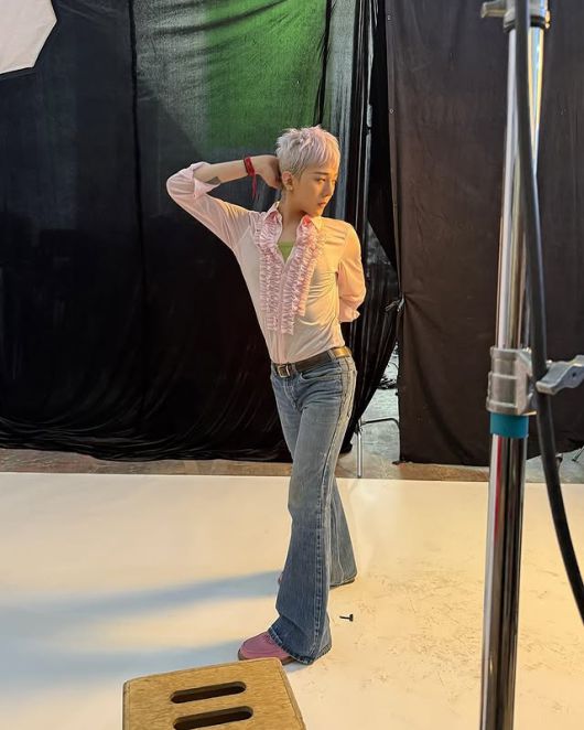 지드래곤의 부계정 ‘8lo8lo8lowme’에는 지난 24일 한 커피 브랜드 광고 촬영장에서 찍은 비하인드 컷 여러 장이 게재됐다.