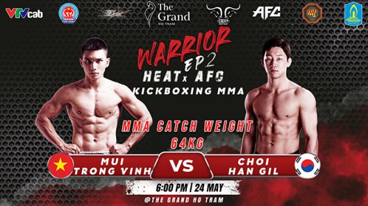 베트남 붕따우 더그랜드 호짬 특설케이지에서는 5월24일 한국시간 오후 8시부터 AFC x HEAT : Warrior Ep.2가 열린다. 무이쫑빈(27)과 최한길(31)의 계약 체중 64㎏ 시합이 제5경기다.