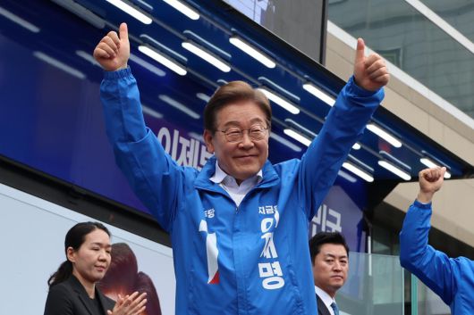 이재명 더불어민주당 대통령 후보가 24일 오후 경기도 부천시 부천역 북부광장에서 열린 유세에서 시민들에게 지지를 호소하고 있다. 뉴시스 |