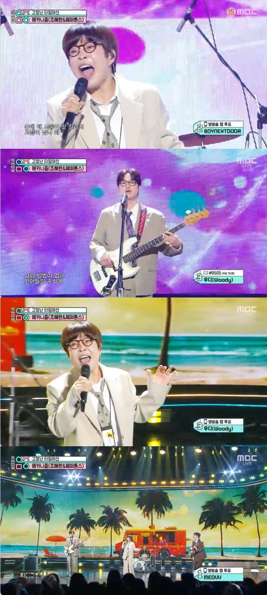 [OSEN=선미경 기자] 개그우먼 조혜련과 밴드 페퍼톤스(신재평, 이장원)가 ‘음악중심’을 접수했다. 아이돌 사이에서 남다른 존재감을 보여주면서 메카니즘의 화려한 데뷔를 알렸다.