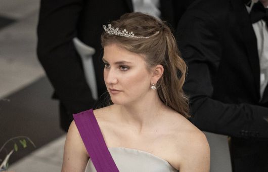 벨기에 필리프 국왕 부부의 2남 2녀 중 장녀로 왕세녀인 엘리자베트 공주가 2023년 10월15일(현지시각) 덴마크 코펜하겐 크리스티안스보르 성에서 열린 크리스티안 왕자 생일 만찬에 참석해 있다. 코펜하겐/AP 연합뉴스