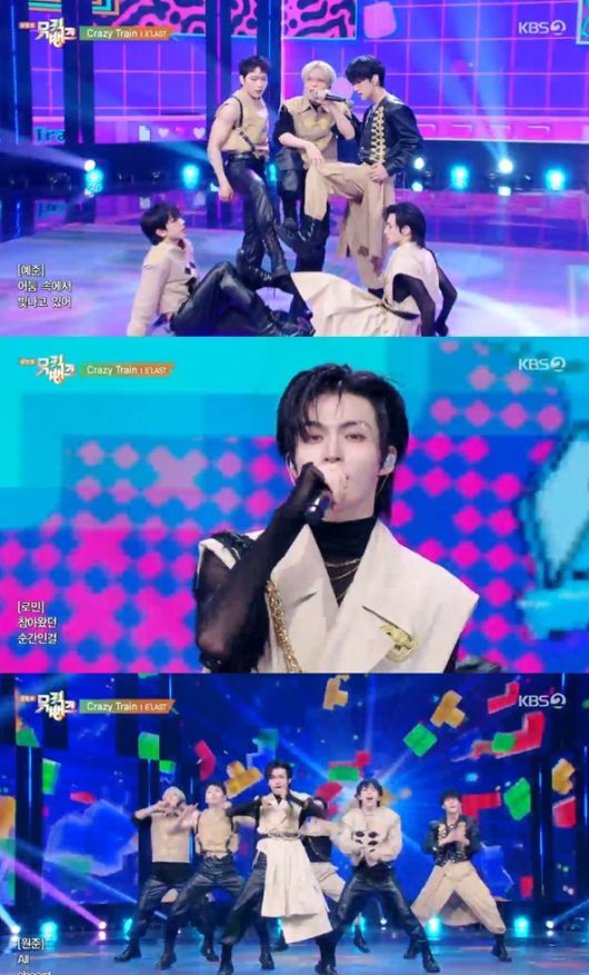 엘라스트는 지난 23일 오후 방송된 KBS 2TV '뮤직뱅크'에 출연해 다섯 번째 미니앨범 'Versus'(베르수스)의 타이틀곡 'CRAZY TRAIN'(크레이지 트래인) 무대를 음악방송 최초로 공개했다.