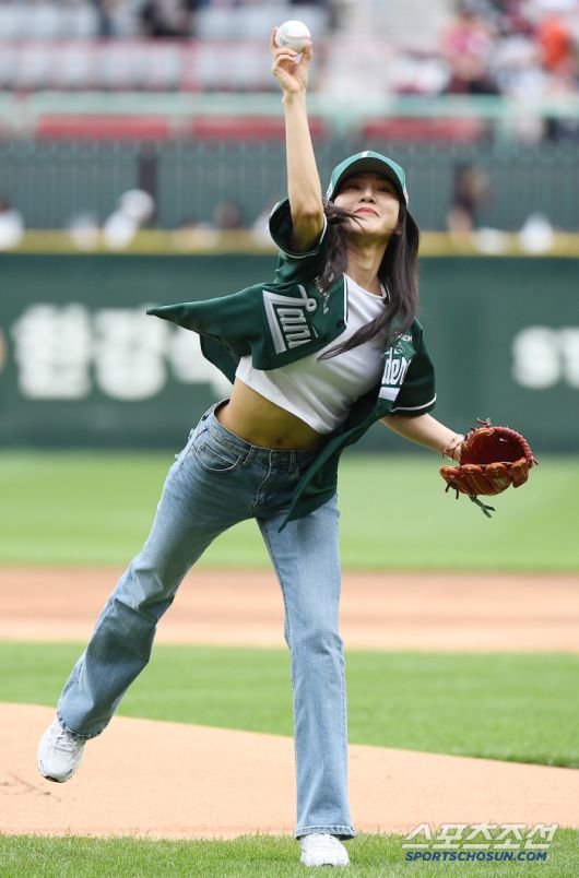 24일 인천 SSG랜더스필드에서 열린 LG-SSG전. 배우 한지은이 시구하고 있다. 인천=정재근 기자 cjg@sportschosun.com/2025.5.24/