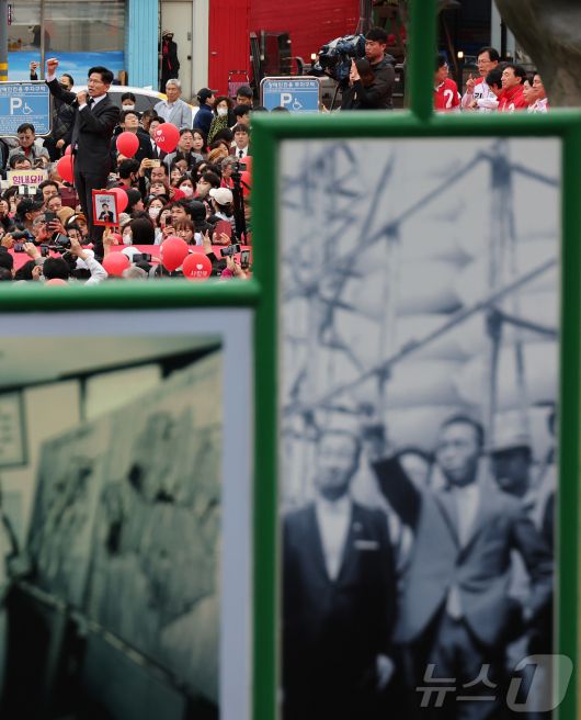 (구미=뉴스1) 김민지 기자 = 김문수 국민의힘 대통령 후보가 24일 경북 구미시 박정희 전 대통령 생가 인근에서 집중유세를 하고 있다. (공동취재) 2025.5.24/뉴스1pjh2035@news1.krCopyright ⓒ 뉴스1. All rights reserved. 무단 전재 및 재배포, AI학습 이용 금지.