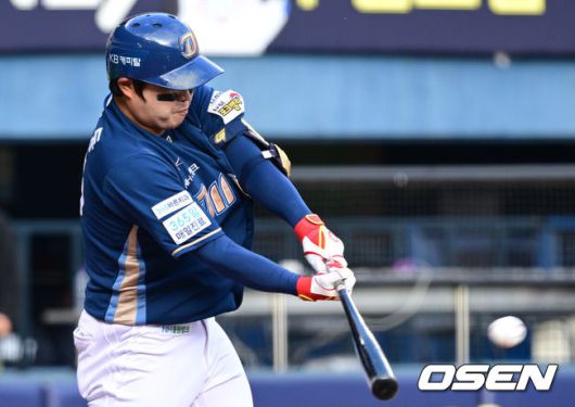 [OSEN=잠실, 조은정 기자]24일 오후 서울 잠실구장에서 2025 신한 SOL Bank KBO리그 두산 베어스와 NC 다이노스의 경기가 열렸다.두산은 최원준을 NC는 라일리를 선발 투수로 내세웠다.4회초 2사 NC 권희동이 안타를 날리고 있다. 2025.05.24 /cej@osen.co.kr