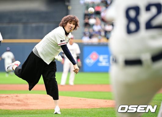 [OSEN=잠실, 조은정 기자]24일 오후 서울 잠실구장에서 2025 신한 SOL Bank KBO리그 두산 베어스와 NC 다이노스의 경기가 열렸다. 두산은 최원준을 NC는 라일리를 선발 투수로 내세웠다. 가수 김장훈이 시구를 하고 있다. 2025.05.24 /cej@osen.co.kr