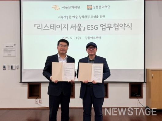 (재)강동문화재단(이사장 이수희, 대표이사 김영호)은 지난 9일(금) 오후 4시, 강동아트센터에서 (재)서울문화재단(이사장 박상원, 대표이사 송형종)과 '리스테이지 서울' ESG 업무협약을 체결했다.