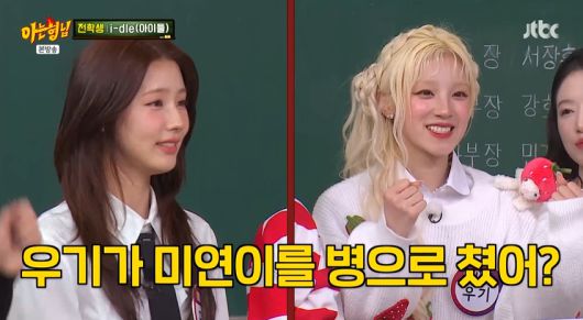 (엑스포츠뉴스 김보민 기자) 아이들 우기와 미연이 뮤직비디오 촬영 중 몸싸움 에피소드를 공개했다.