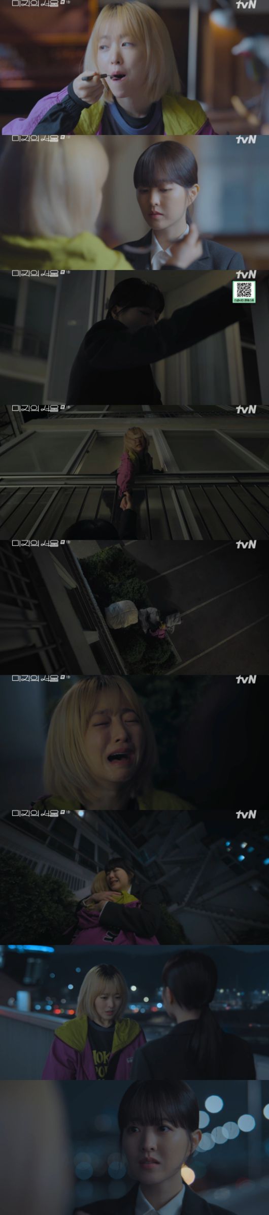 유미래는 "그걸 알면 손을 놔야지 왜 같이 떨어져"라며 탄식했고, 유미지는 "어떻게 놔. 내가 네 손을 어떻게 놔. 너 죽으면 나는, 나는 어떻게 살라고"라며 애틋함을 드러냈다. 유미래는 "미안해, 미지야. 내가 미안해"라며 사과했다.