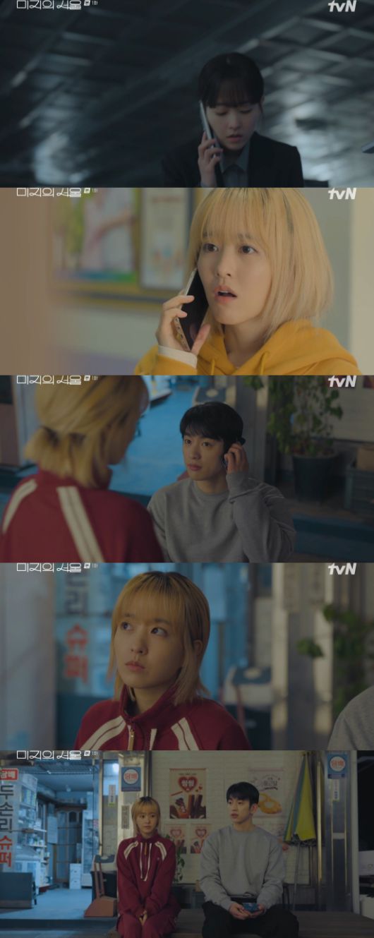 24일 첫 방송된 tvN 새 토일드라마 '미지의 서울' 1회에서는 유미지(박보영 분)가 유미래(박보영)를 만나기 위해 서울로 향한 모습이 그려졌다.