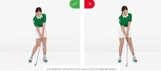아이언의 다운블로는 사실 엄청난 기술을 장착해야 하는 것이 아니다. 단지 임팩트 구간에서 아이언 헤드의 입사각을 그대로 살리면서 정타로 볼을 맞히는 걸 의미한다. 뒤땅 치기와 토핑이 발생한다면 다운블로 임팩트가 이뤄지지 않는, 또는 다운블로로 치기 힘든 조건을 가지고 있을 확률이 높다. 체크할 포인트는 체중 이동과 래깅이다.