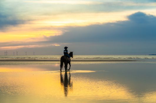 시간대를 잘 맞춘다면 해 질 녘의 명사십리 해변을 감상하며 승마를 즐기는 것도 가능하다. 황금빛으로 물든 명사십리 해변을 감상하는 것만으로도 황홀하다.