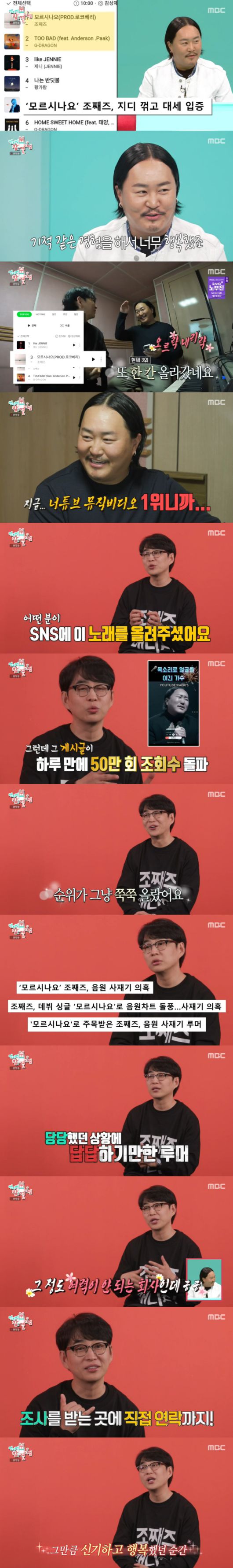 조째즈 소속사 대표이자 매니저인 로코베리 팀에서 작곡가로 활동하는 안영민은 '이렇게 잘 될 줄 알았냐'는 질문에 "전혀 몰랐다. 어떤 분이 SNS에 이 뮤직비디오를 올려주셨다. 그 게시글이 하루만에 50만 조회수를 돌파하더니 갑자기 불붙기 시작했다"고 했다. 이어 그는 "그냥 쭉쭉 올랐다. 40, 50 계단씩 올랐다. 26년 동안 음악을 하면서 처음 겪은 일이다"며 "너무 놀라서 바로 전화를 했다. 순위를 모르고 있던 째즈도 엄청 놀랐다"며 웃었다.