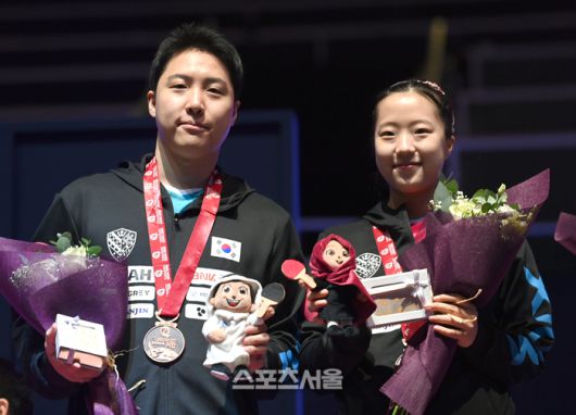 [포토] 혼합복식 신유빈-임종훈 ‘동메달 목에 걸고’