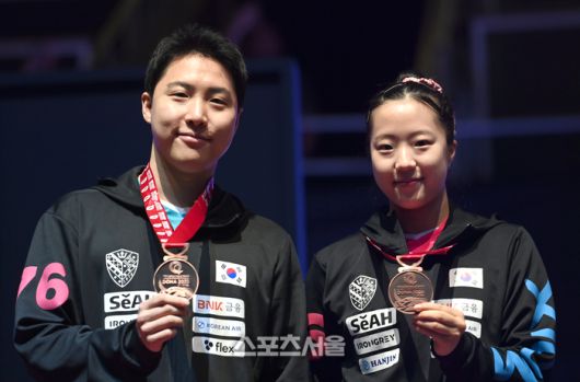 임종훈, 신유빈이 24일 카타르 도하 루사일 아레나에서 열린 2025 국제탁구연맹(ITTF) 세계선수권대회 혼합복식 시상식에서 동메달을 걸고 포즈를 취하고 있다. 2025. 5. 24. 도하(카타르) | 최승섭기자 thunder@sportsseoul.com [기사제보 news@sportsseoul.com] Copyright ⓒ 스포츠서울&sportsseoul.com
