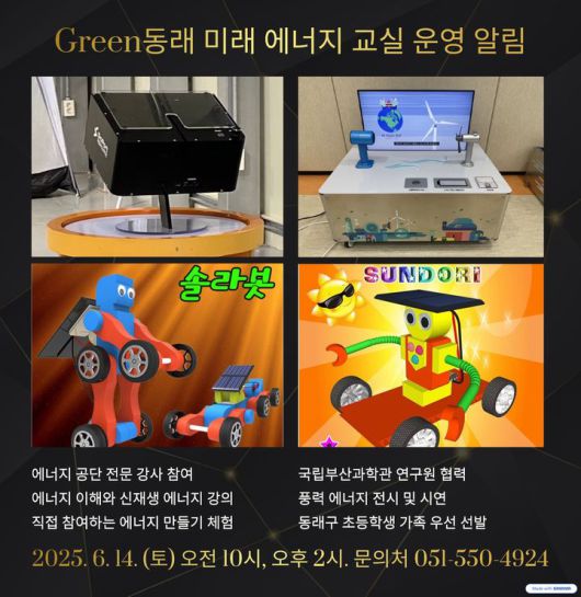 [부산=뉴시스] 부산 동래구는 6월10일까지 '2025년 상반기 그린(Green) 동래 미래 에너지 교실' 참가자를 모집한다. (사진=동래구 제공) 2025.05.25. photo@newsis.com *재판매 및 DB 금지 |