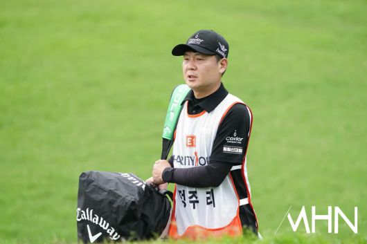 [mhn포토] 정주리 캐디 김혜수, 신중하게 살핀다