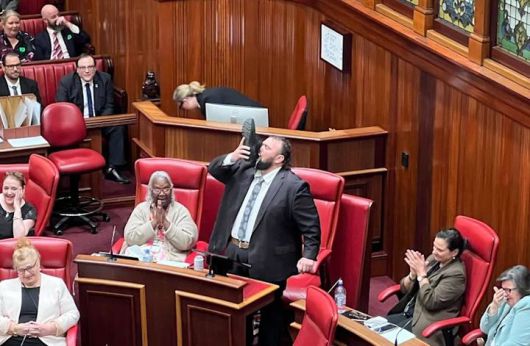 [서울=뉴시스] 슈이를 선보이는 카일 맥긴 호주 상원 노동당 의원.(사진=WAtoday 보도 갈무리) *재판매 및 DB 금지 |