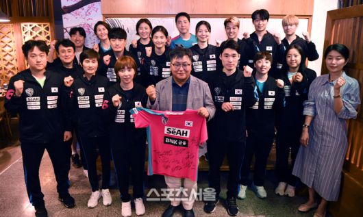 2025 국제탁구연맹(ITTF) 세계선수권대회 선수단이 24일(현지시간) 카타르 도하 한 한국식당에서 격려 방문한 윤현수 주카타르 대사에 유니폼을 전달한 후 기념촬영을 하고 있다. 2025. 5. 24. 도하(카타르) | 최승섭기자 thunder@sportsseoul.com [기사제보 news@sportsseoul.com] Copyright ⓒ 스포츠서울&sportsseoul.com