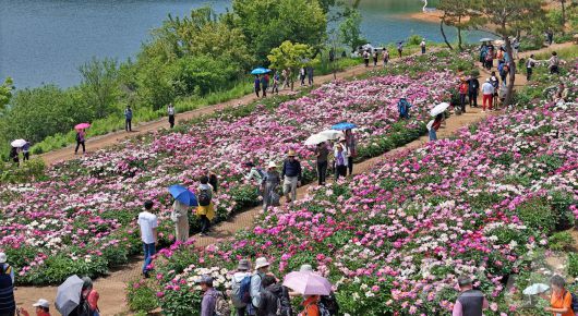 지난 17일 전북 임실군 운암면 옥정호 붕어섬에 작약꽃이 만발해 방문객들의 시선을 사로잡고 있다.(임실군 제공, 재판매 및 DB금지)2025.5.17/뉴스1 DB |