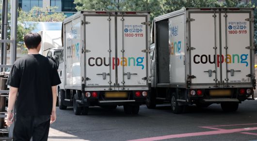 서울 시내의 한 물류 캠프에 쿠팡 배송 차량이 주차돼 있다. / 연합뉴스 |