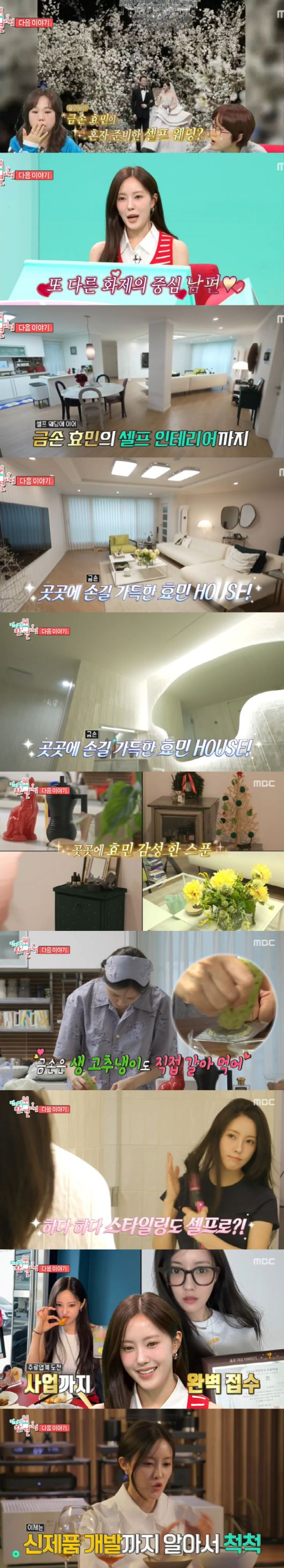 또한 효민은 요리 실력과 헤어, 메이크업까지 직접 하며 금손다운 면모를 자랑했다.