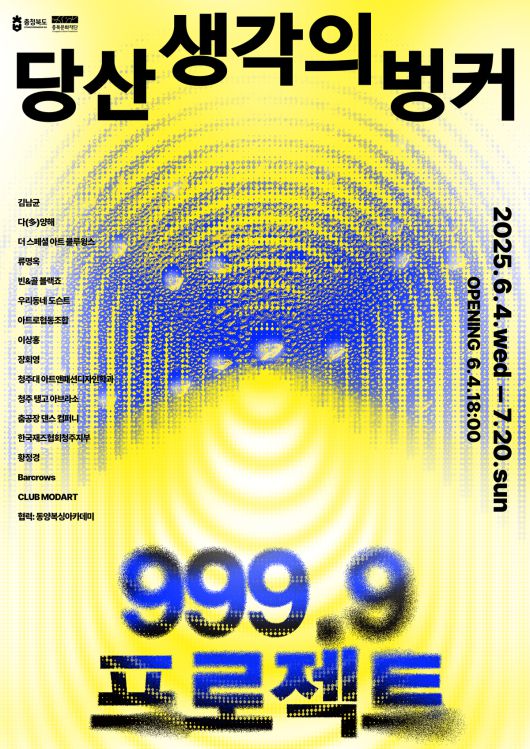 충북도와 충북문화재단은 당산 생각의 벙커에서 2차 행사 ‘999.9 프로젝트’를 다음 달 4일부터 7월20일까지 개최한다고 23일 밝혔다.