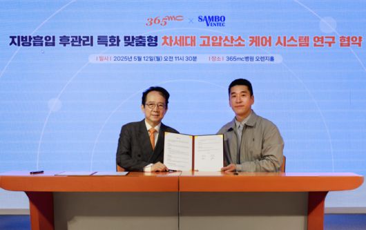 이번 협약식을 시작으로 365mc는 삼보벤택과 협력해 지방흡입·람스 특화 고압 산소치료 후관리 연구·개발에 착수한다. 이를 통해 시·수술 부위 회복 속도를 극대화해 신속한 후증상 및 불편감 감소에 기여할 방침이다.