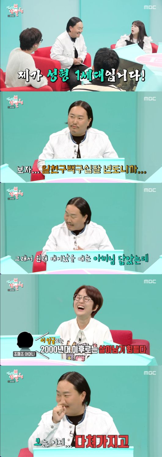 쌍꺼풀 수술을 했다는 조째즈는 “성형 1세대다. 일천구백구십팔년도다. 어머니가 손을 잡고 쌍수를 하자 미래를 위해서. ‘이 얼굴로는 2000년 이후로는 살아남기 힘들다’”라고 솔직하게 밝혔다.