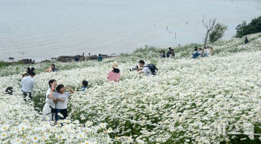 [부안=뉴시스] 김얼 기자 = 선선한 봄 날씨가 이어지고 있는 24일 전북 부안군 변산면 마실길에 샤스타데이지가 만개해 있다. 2025.05.23. pmkeul@newsis.com |